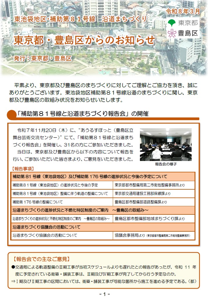 ■「東池袋地区・補助第81号線 沿道まちづくり 東京都・豊島区からのお知らせ」(ニュース)について